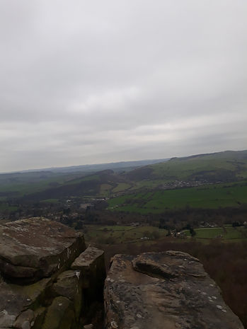 What struck me immediately was how open the landscape was, with hills emerging abundantly across all sides. We walked up one of these here at Ashover Rocks, a good vantage point. Also known as “The Fabrick” I was told. Would have been even better with binoculars. This was a 15 minute walk from his house.