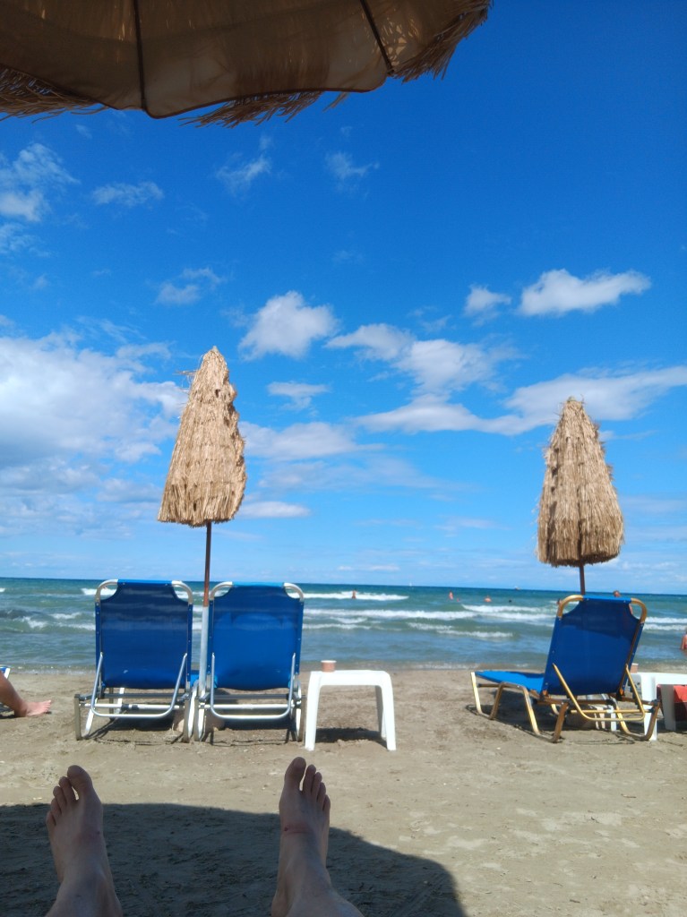 Left the main stretch of the town and along a beautiful coast. In the end I hijacked a sunbed on a beach that was part of one of the hotels. Cheeky move, but no-one else seemed to notice. Even used the hotel toilet and ordered a bottle of beer at the bar.